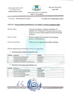 Wareegtada uu soo saaray Madaxweynaha Jubbaland ayuu ku magacaaby guddoomiyaha maxkamadda racfaanka ee gobolka Gedo , iyo sidoo kale guddoomiyaasha degmooyinka kala duwan ee ka kooban tahay gobolka Gedo.