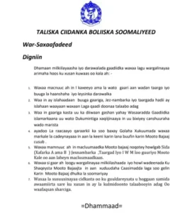 5. Waxaa Mamnuuc ah in macluumaadka Mooto bajaaj Noqotey Howlgal Sida (Xafarka A ama B ) Jesnambarka ,Taargad Iyo I W M loo Guuriyo Mooto Kale oo aan Laheyn Macluumaadkaas