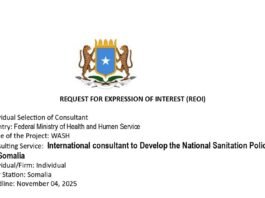 Request for Expression of Interest for International consultant to Develop the National Sanitation Policy for Somalia