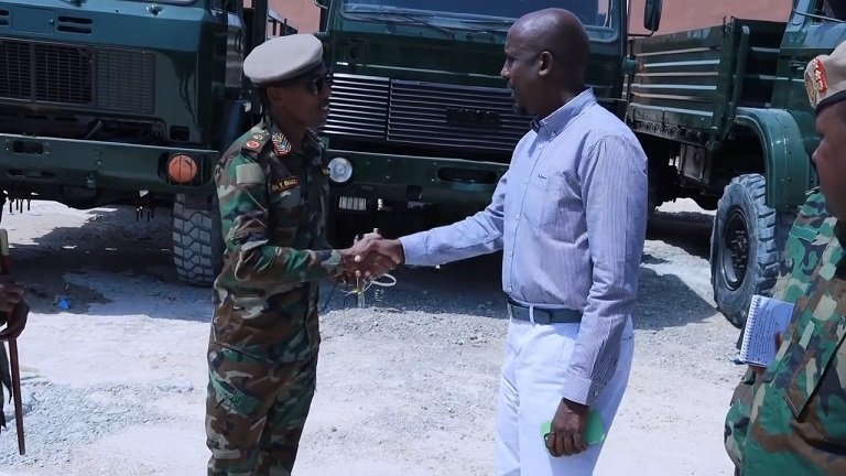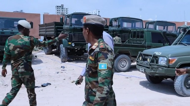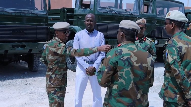 Taliyaha Ciidanka Xoogga Dalka Soomaaliya General Odawaa yuusuf raage oo ay wehliyaan saraakiil kale ayaa maanta la wareegay Gaadiidka kuwa dagaalka ah oo Dowlada Soomaaliya soo iibsatay.