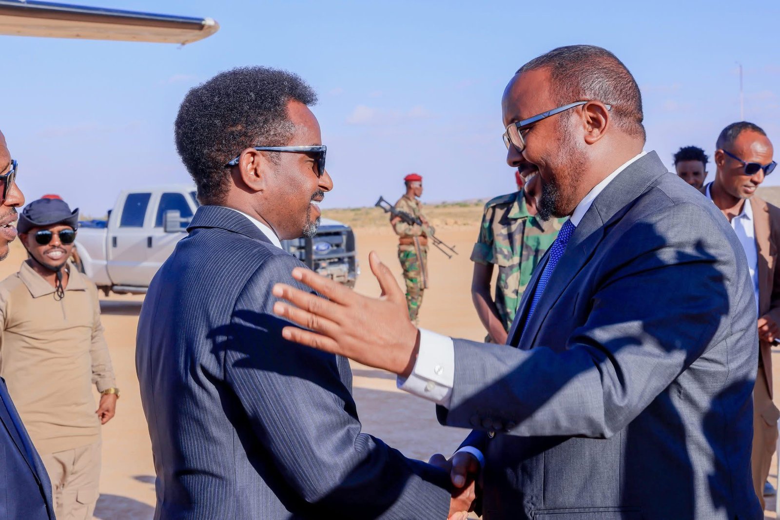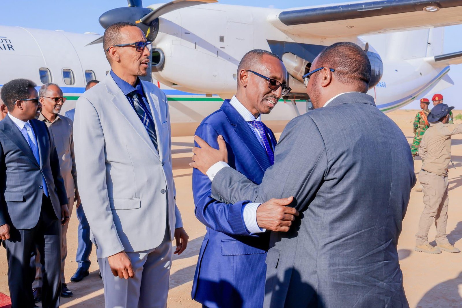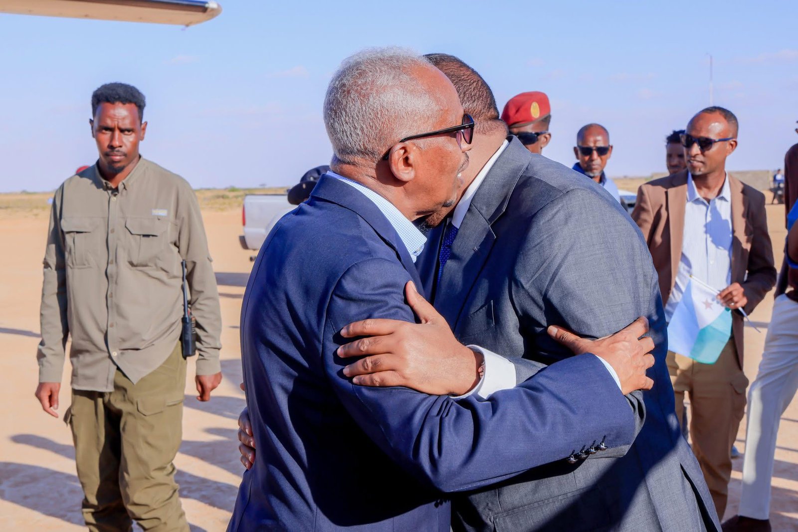 Jimco 16 jun 2026 {HMC} Madaxweyne H.E Abdikadir Ahmed Aw Aliayaa garoonka diyaaradaha magaalada Laascaanood ku soo dhaweeyey wafdi sare oo ka socda Jamhuuriyadda aan walaalaha nahay ee Jabuuti.