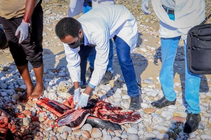 Jimco 24-jun 2025 {HMC} Wasaaradda Kalluumaysiga iyo Khayraadka Badda Dawladda Puntland oo kaashanaysa Wasaaradda Deegaanka, Jaamacadda Bariga Afrika, Jaamacadda Citycote iyo Machadka Culuumta Badda ee Puntland ayaa maanta booqday goobtii ay kusoo caaryeen kalluunka Homboborada (Dolphins) ee xeebta magaalada Boosaaso. Waxay halkaas kusoo arkeen tiro homboboro ah oo dhintay oo kor u dhaafaya boqol.