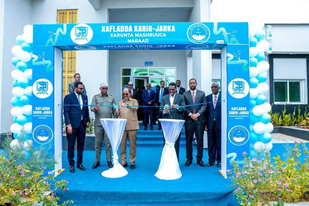Arboco, 20 Aug 2025 {HMC} Madaxweynaha JFS, Mudane Xasan Shiikh Maxamuud, oo ay wehliyo Madaxweynaha Dowlad-goboleedka Galmudug, Mudane Axmed Cabdi Kaariye, ayaa si wadajir ah xarigga uga jaray Xarunta Mashruuca Nagaad ee Galmudug, kaasoo ay fuliso Dowladda Hoose ee Dhuusamareeb.