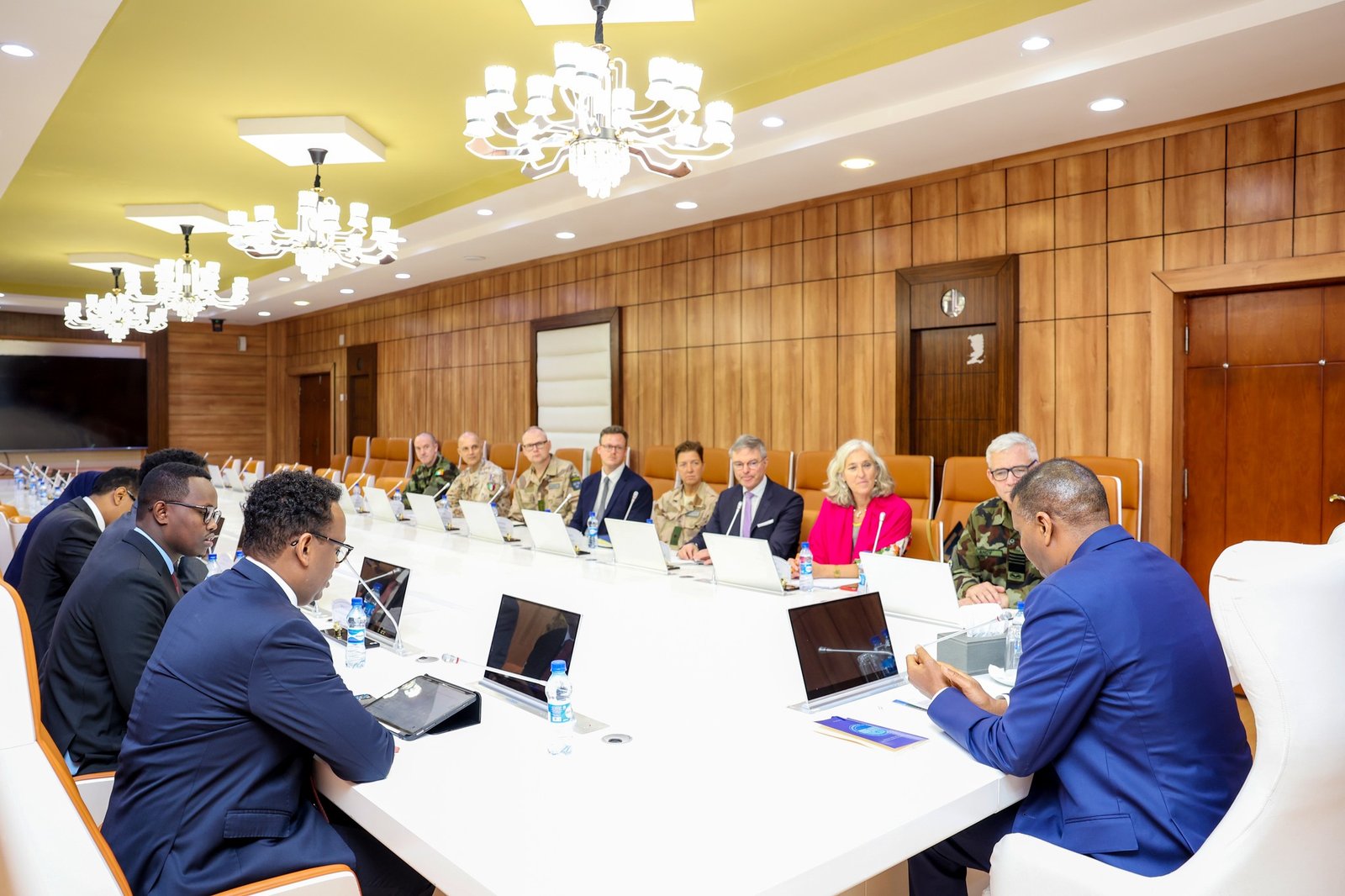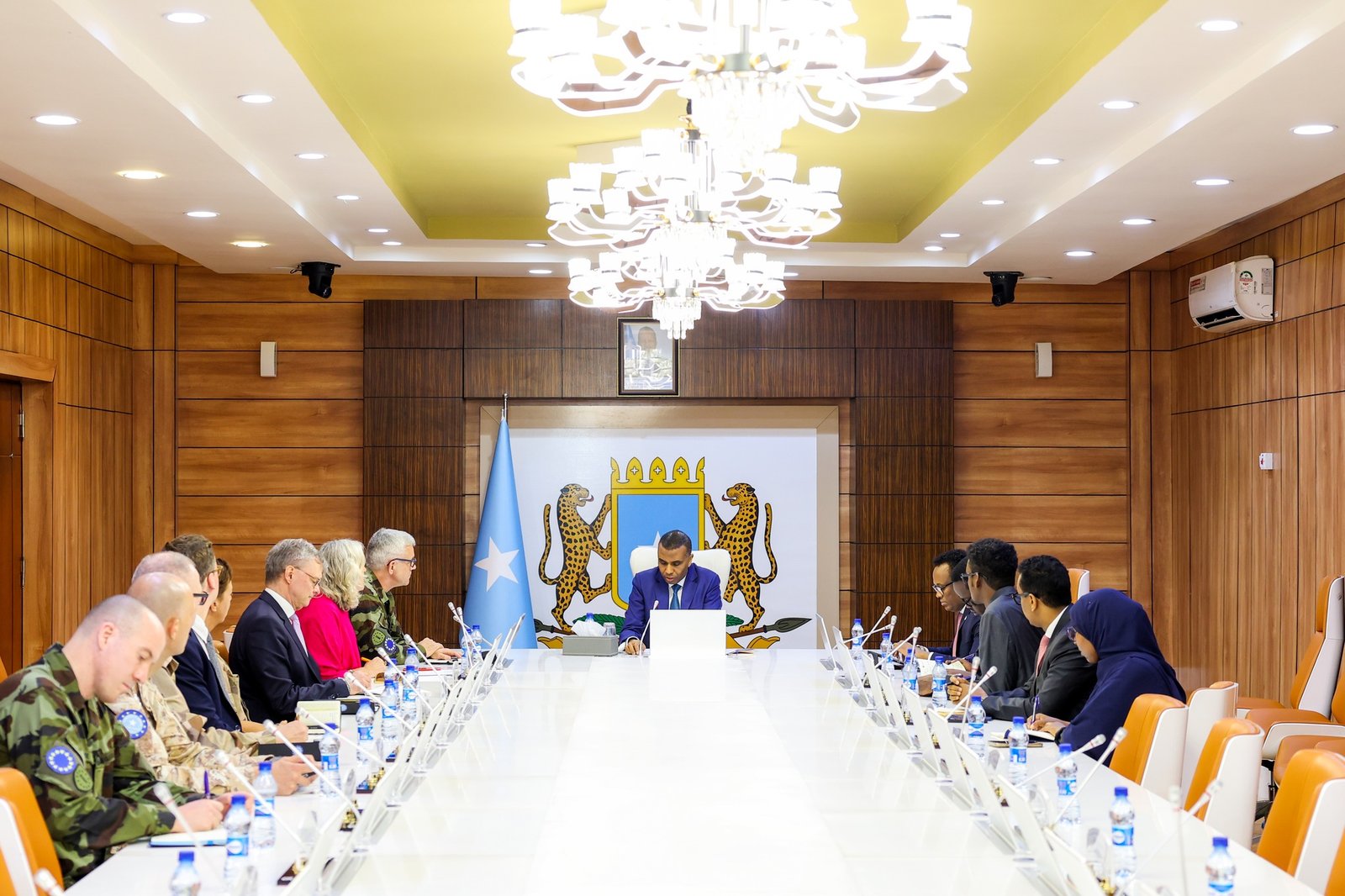 Arbaco 28 Jun 2026 {HMC} Ra’iisul Wasaaraha Xukuumadda Jamhuuriyadda Federaalka Soomaaliya, Mudane Xamsa Cabdi Barre, ayaa xafiiskiisa ku qaabilay wafdi sare oo ka socda Midoowga Yurub, oo uu hoggaaminayay General Seán Clancy guddoomiyaha Golaha Ciidanka Xoogga ee Midoowga Yurub (CEUMC), ayna ka mid ahaayeen safiirka Midoowga Yurub u qaabilsan Soomaaliya Marwo Francesca Di Mauro, iyo Madaxa Qaybta Bariga Afrika ee Adeegga Arrimaha Dibadda Midowga Yurub (EEAS) Jonas Jonsson .