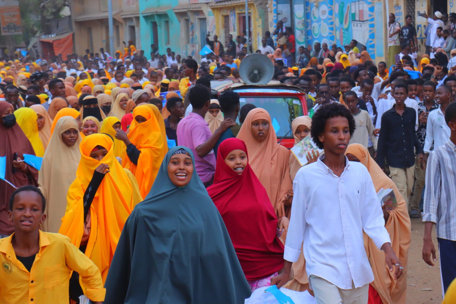Boqolaal dadweyne ah oo ubadan arday, Macalimiin iyo Maamulka heer Gobol iyo heer degmo ayaa iskugu soo baxay tartamaha Magaalada Baladweyne. iyaga oo garab istaag buuxo u Muujiyay dowlada Soomaaliya.