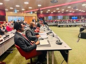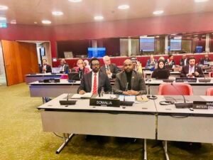 Talaado 15-10-2024 {HMC} Geneva-Switzerland October, 15, 2024: Xoghayaha guud ee Golaha Shacabka Baarlamaanka Jamhuuriyadda Federaalka Soomaaliya Mudane Cabdiraxmaan Maxamed Cabdulle Jaabiri oo uu wehliyo xoghaye kuxigeenka Golaha Aqalka Sare ayaa ka qeyb galay kulanka guud ee Xoghayaasha Baarlamaanka Aduunka kulankiisa 149-aad oo lagu qabtay Magaaladda Geneva ee wadanka Switzerland.
