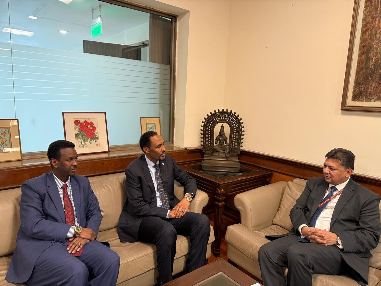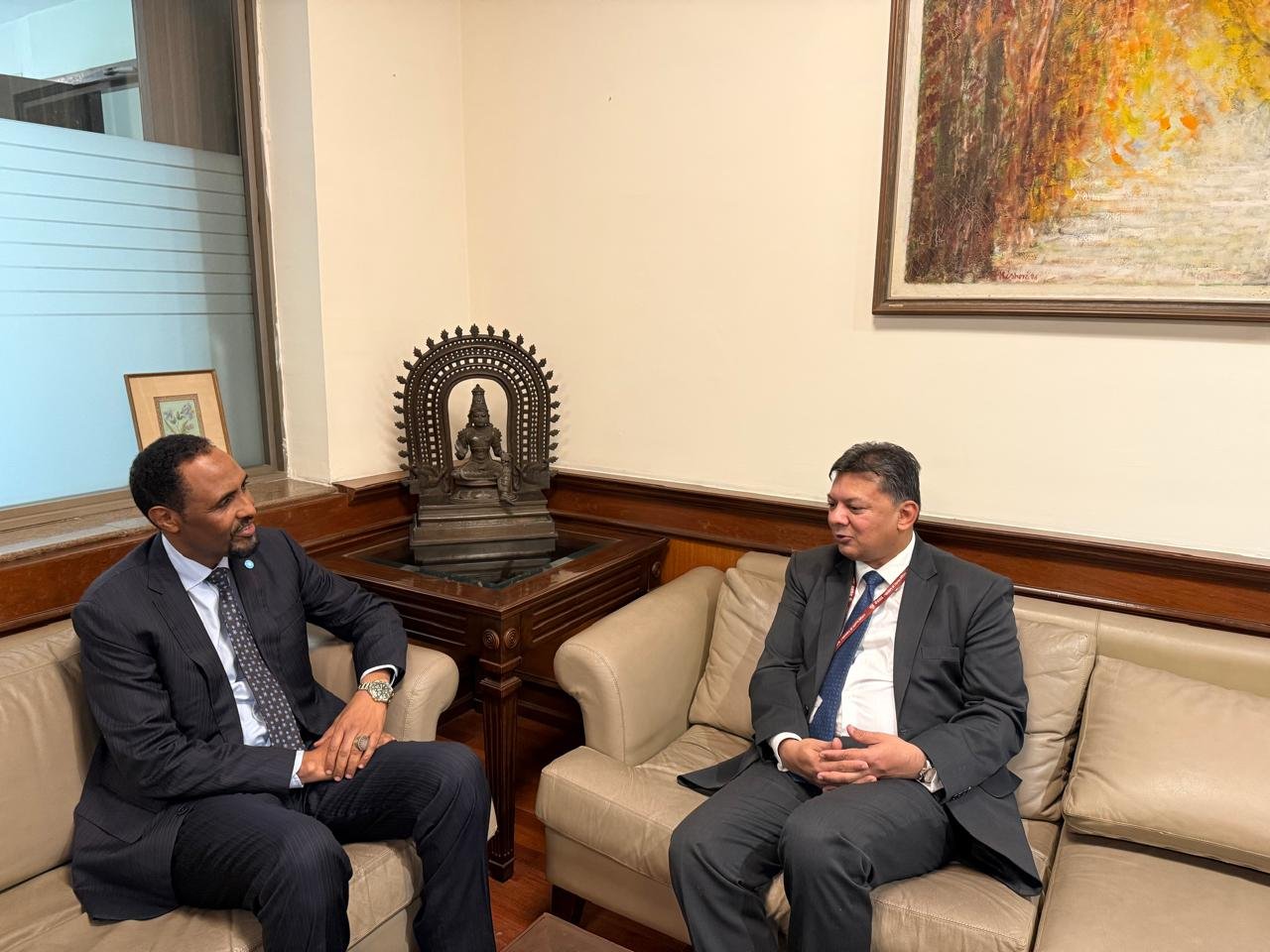 Talaado 7, Jan 2025 {HMC} Danjiraha cusub ee dhawaan dowladda Federaalka Soomaaliya u soo magacawday dalka Hindiya , mudane Dr. Cabdullahi Maxammed Odowa ayaa maanta ugudbiyay Nuqul kamida Warqadaha Aqoonsiga Danjirenimo, Agaasimaha Hab maamuuska Qaranka ee dalka India, Mudane Mr. Anshuman Gaur.