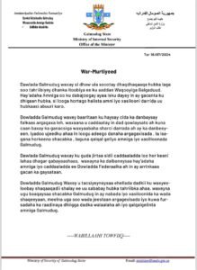 “Dawlada Galmudug waxay si dhow ula socotay dhaqdhaqaaqa hubka laga soo tahriibiyey dhanka Itoobiya ee ku aaddan Waqooyiga Galgaduud. Hay’adaha Amniga oo ku dabajoogay ayaa isku dayey in ay gacanta ku dhigaan hubka, si looga hortago halista amni iyo xasilooni darrida uu hubkaasi abuuri karo,” ayaa lagu yiri war-saxaafadeedka Galmudug.