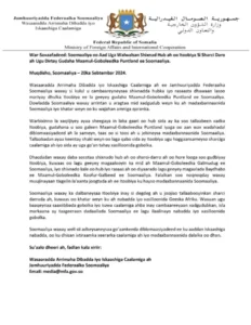 Sidoo kale dowladda Soomaaliya ayaa bayaankaan ku tiri, “Waxaan ugu baaqeynaa saaxiibbada Gobolka iyo kuwa caalamiga ahba inay cambaareeyaan xadgudubkan, islamarkaana ay taageeraan dadaallada Soomaaliya ee lagu ilaalinayo nabadda iyo xasilloonida Gobolka.”