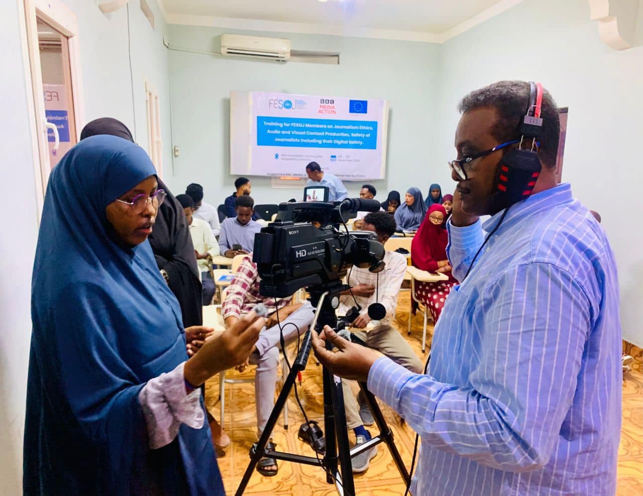 FESOJ iyo BBC Media Action ayaa iska kaashaday tababarkan, oo ay maalgeliyeen Midowga Yurub. Guddoomiyaha FESOJ, Abaadir Cabdulqaadir Cilmi, ayaa sheegay in tababarkan uu suxufiyiinta ka caawinayo in ay soo saaraan warbixino mas’uuliyad leh iyo kuwo ku saleysan anshaxa saxaafadda.