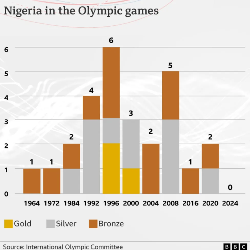 Africa’s most populous nation departed Paris without a medal and last struck gold at Sydney 2000.