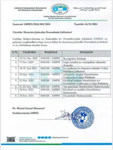 Axad 17- Nov-2024 {HMC} Guddiga doorashada Jubbaland ayaa xalay soo saaray jadwalka doorashada guddoonka Baarlamaanka, Madaxweynaha iyo goorta la shaacinayo xubnaha baarlamaanka Jubbaland.