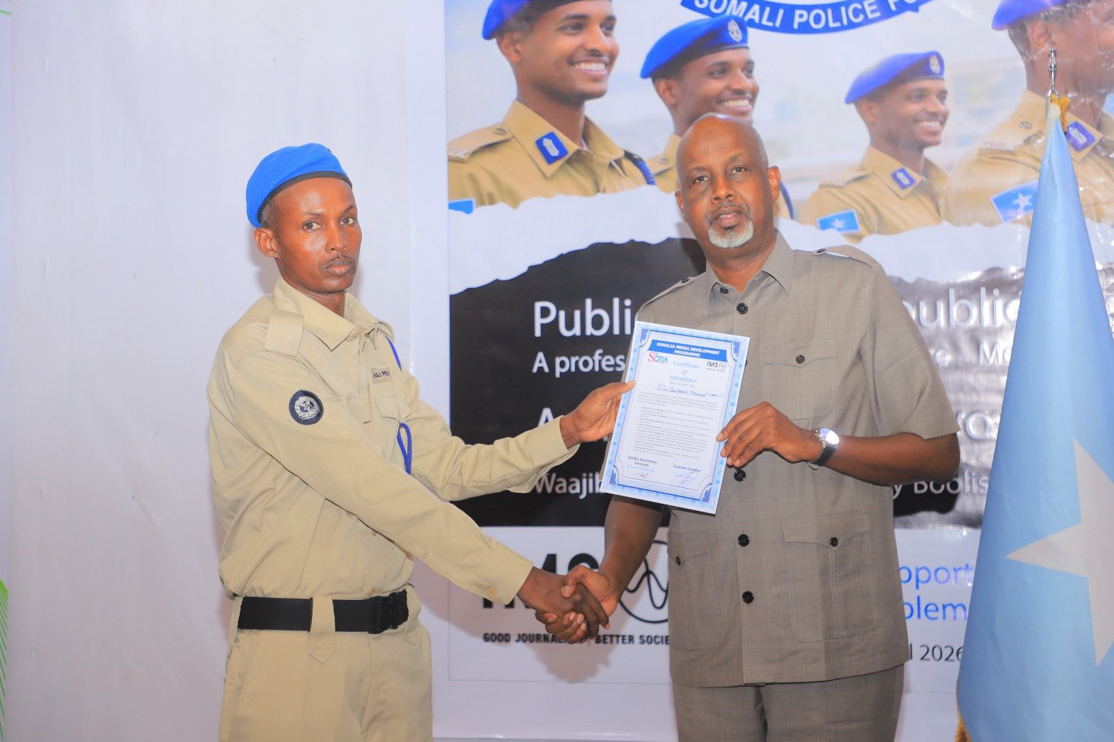 Jimco 2 April 2026 {HMC} Hay’adaha SOMA iyo IMS ayaa maanta magaalada Muqdisho ku soo gaba-gabeeyey aqoon-isweydaarsi socday muddo laba maalmood ah, kaas oo ay ka qeyb galeen saraakiil ka tirsan Booliiska, madax ka socotay warbaahinta iyo hoggaamiyeyaal ka tirsan bulshada rayidka Soomaaliyeed.
