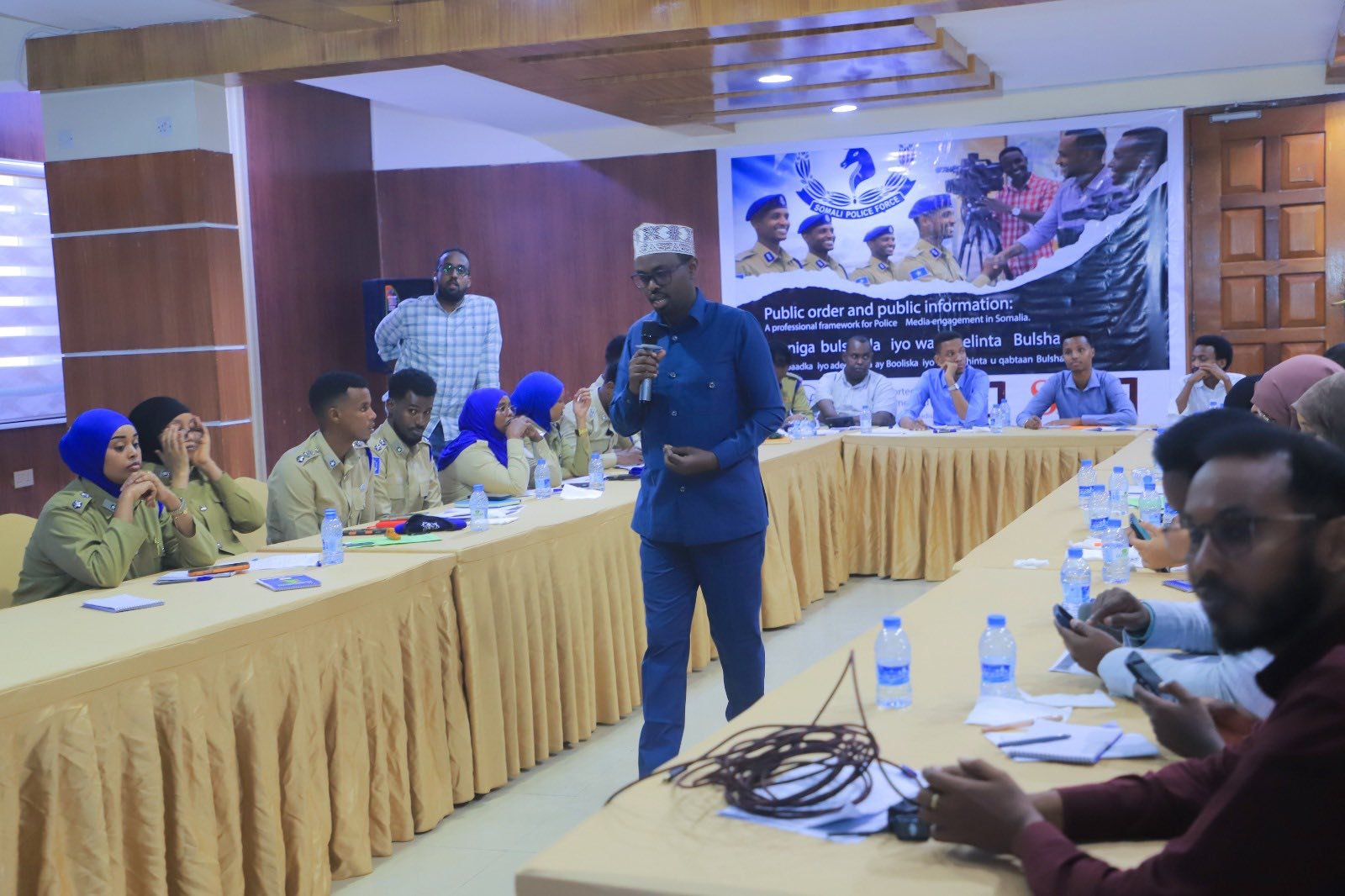 Intii uu socday tababarka, ka qeybgalayaasha ayaa is dhaafsaday khibrado iyo aragtiyo ku saabsan sida loo wanaajin karo xiriirka iyo iskaashiga u dhexeeya warbaahinta iyo Booliiska, si loo helo bulsho amni leh oo xog-ogaal ah.