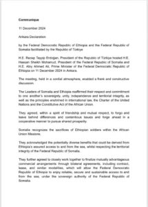 Khamiis 12, Dec 2024 {HMC} Kabul — Madaxweynaha Soomaaliya Xasan Sheekh Maxamuud iyo ra’iisul wasaaraha Itoobiya Abiy Ahmed ayaa Ankara ku saxiixday heshiis taariikhi ah oo lagu soo afjarayo khilaafkii labada dal, kaasi oo uu fududeeyey madaxweyne Erdogan.