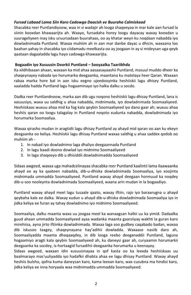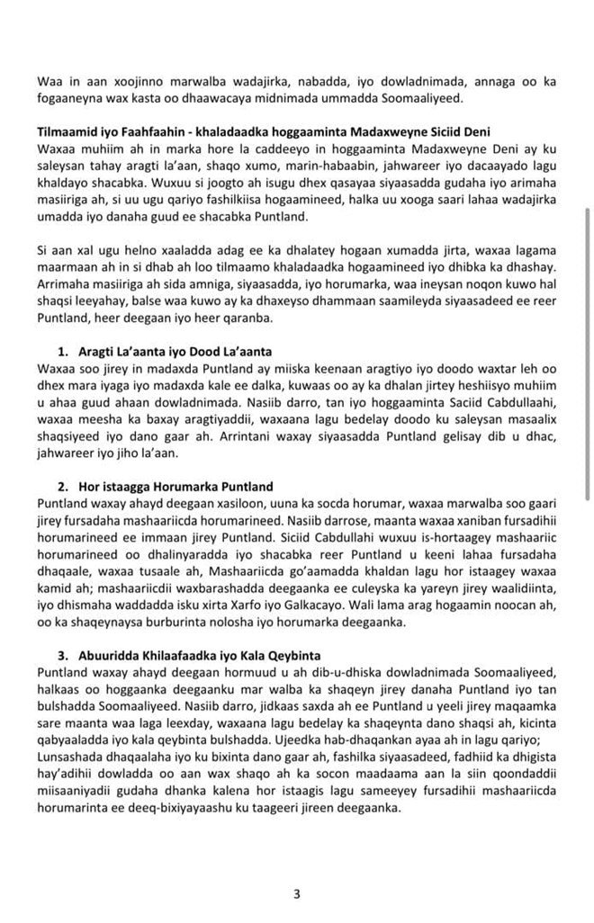 Fadhiyadu waxay diiradda saareen qodobada kala ah :