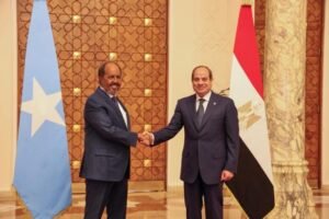 Sunday , 08 Feb 2026 {HMC} — The President of the Federal Republic of Somalia, H.E. Hassan Sheikh Mohamud, was accorded a high-level official reception at Al-Ittihadiya Presidential Palace in Cairo, where he was received by his Egyptian counterpart, H.E. Abdel Fattah El-Sisi.