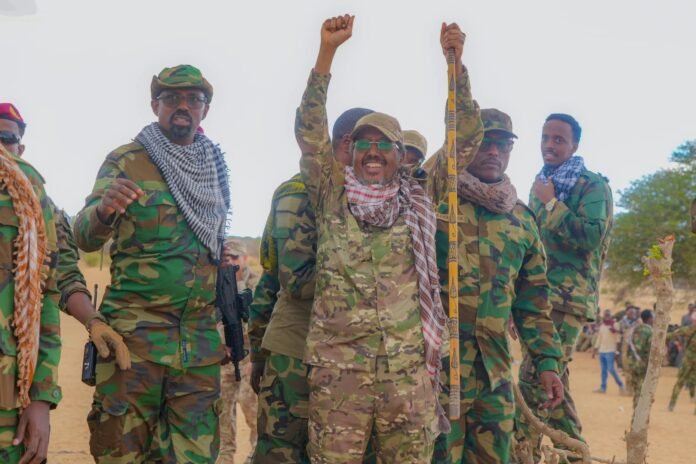 The president arrived in the strategic town of Raaga Elle on Monday, where he addressed hundreds of Macawisley fighters — local militia drawn from the community who have become central to the government’s grassroots war effort. From there, he travelled to Cadale, a coastal town in the same region, to continue leading field operations and mobilizing local support.