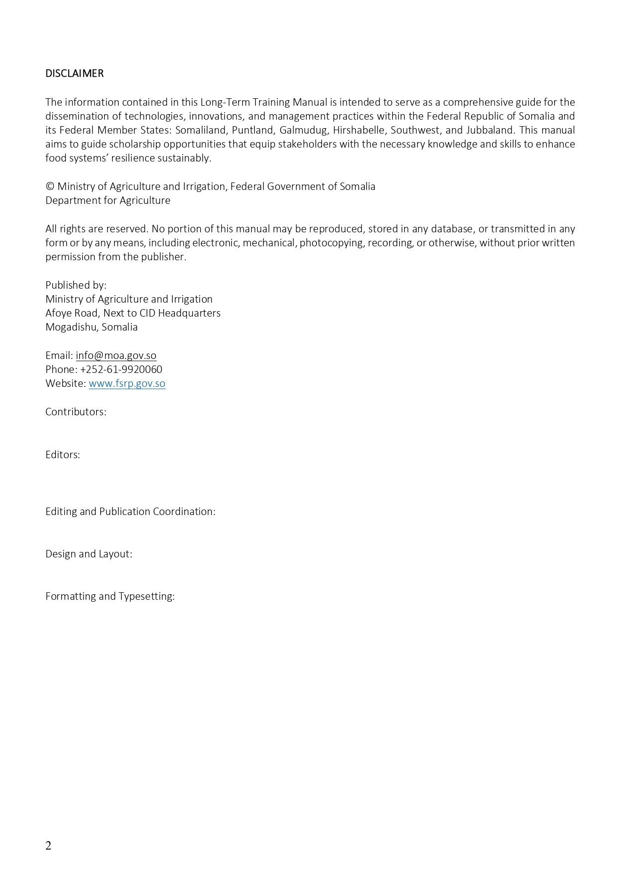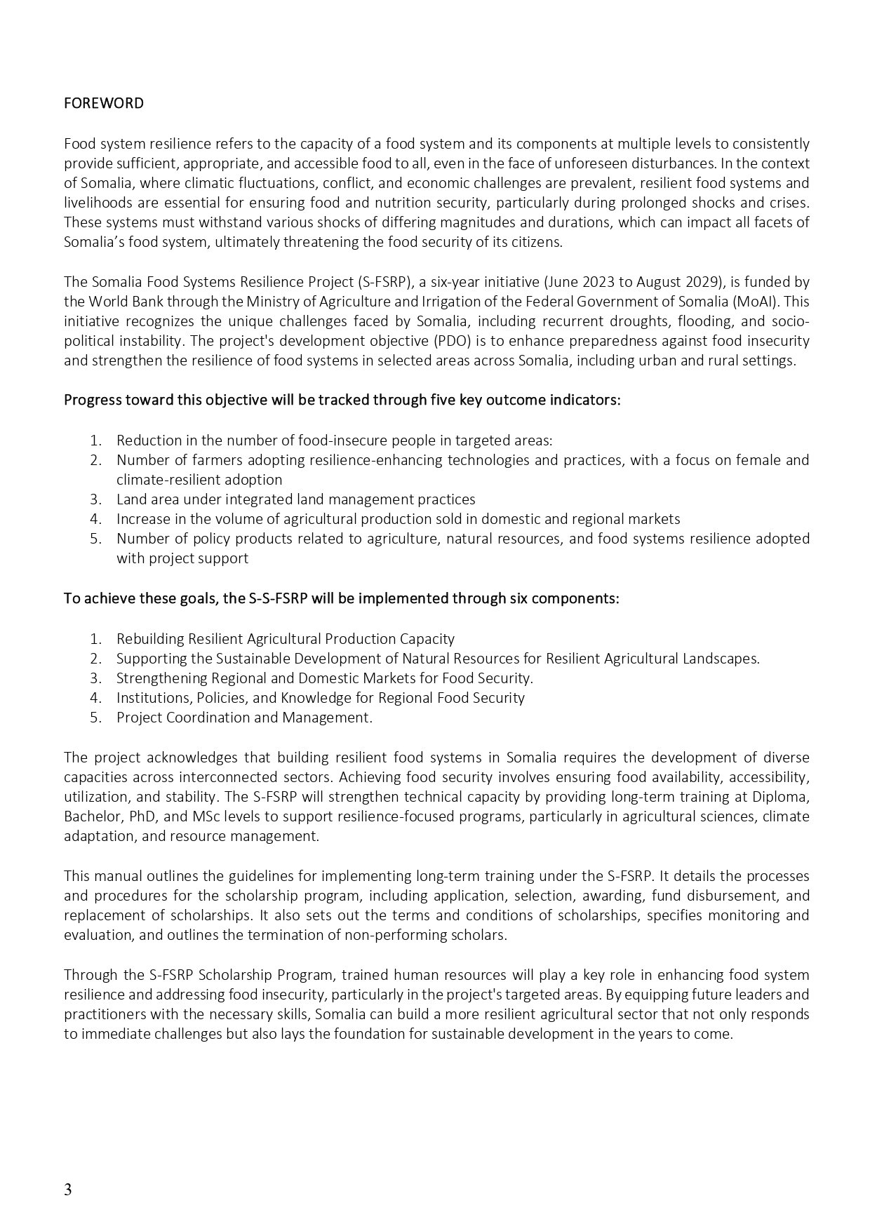 JOBS Somalia Food Systems Resilience Project (S-FSRP) By Abdullahi Osman - 20 December 2025 0 52 Share FacebookTwitterWhatsAppTelegram S-FSRP Manual for Long-term Training Program V3 Draft WB Final 20th Dec 2025 Share this: Click to share on Facebook (Opens in new window) Facebook Click to share on X (Opens in new window) X Like this:Like Loading...Share