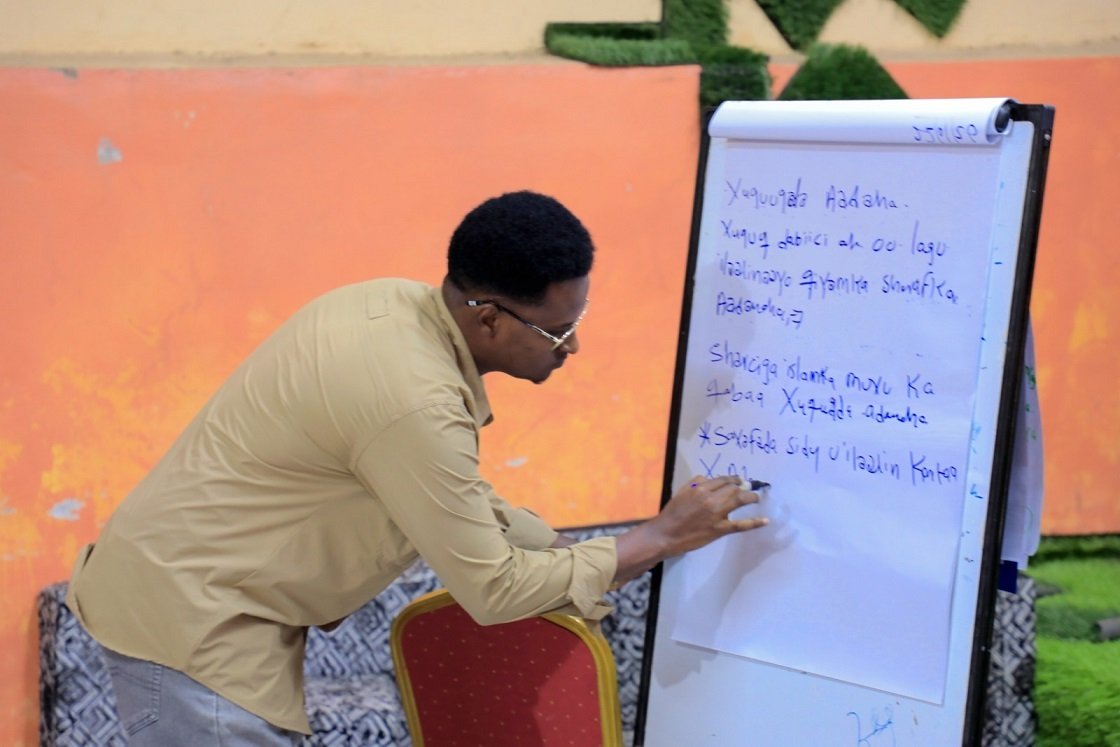 Tababarkan oo ay ka faaideysteen in kabadan 30 qof oo iskugu jiro saxafiyiint Ururada Bulshada Maamulka iyo Booliska ayaa waxaa uu ku saabsanaa Awood-dhisidda Saxafiyiinta ee la socodka, Warbixinada iyo Xorriyadda Hadalka ee Xuquuqda Aadanaha.