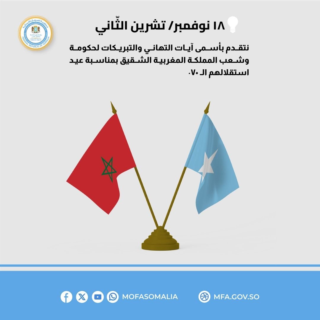 On this significant occasion, Somalia conveys sincere wishes for enduring peace, unwavering stability, and sustained prosperity for the Kingdom, looking forward to the continued growth of cooperation, the deepening of mutual understanding, and the strengthening of bonds that unite our two nations in a shared spirit of solidarity.