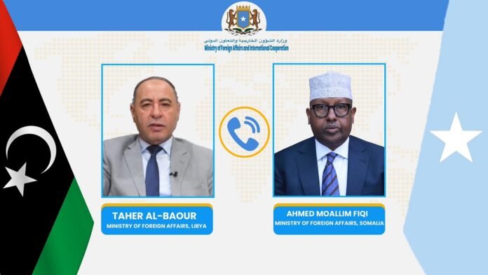 Wednesday 8, Jan 2025 {HMC} His Excellency Ambassador Ahmed Moalim Fiqi, Minister of Foreign Affairs and International Cooperation, held a constructive phone conversation with His Excellency Taher Salem Al-Baour, Acting Minister of Foreign Affairs and International Cooperation of Libya.