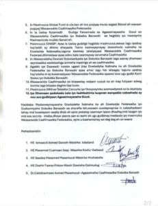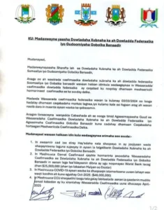 Isniin 09,Sept,2024 {HMC} Wasaaradaha dowlad goboleedyada dalka iyo Agaasinka caafimaadka gobolka Banaadir ayaa soo saaray bayaan ay ku joojiyeen, dacwana uga gudbiyeen wasaaradda caafimaadka dowladda federaalka Soomaaliya, kaasi oo dhowr qodob ka kooban.